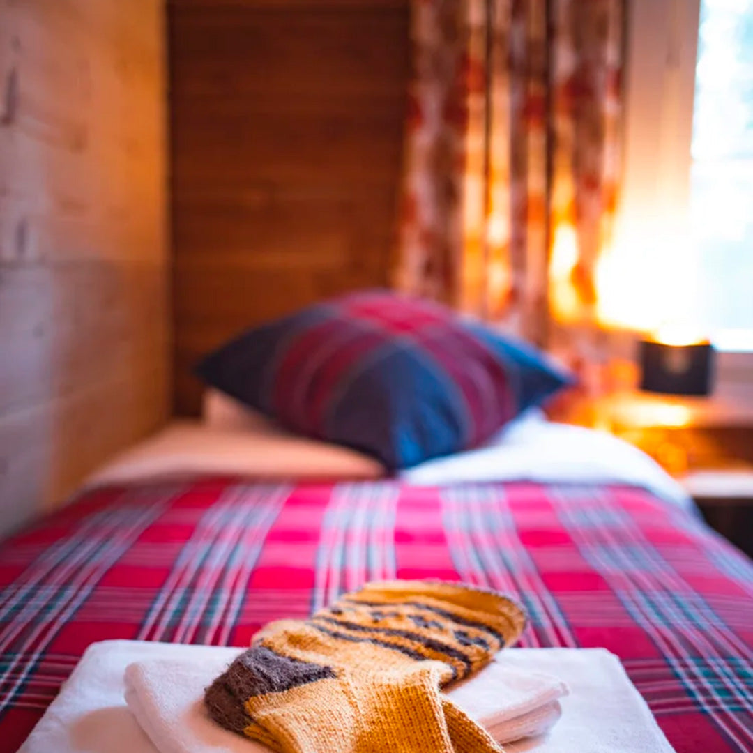 on valittu sängyt ja petauspatjat, joita voi muunnella parisängyiksi tai yhden hengen vuoteiksi. Erityisesti Familonin napakat sängyt sekä muhkeat peitot ovat saaneet kiitosta. Arctic Sky:n vieraat kertovat nukkuvansa ”olosuhteisiin nähden” hyvin – talviaikaan herätyskello soi monta kertaa yössä revontulien bongausta varten.